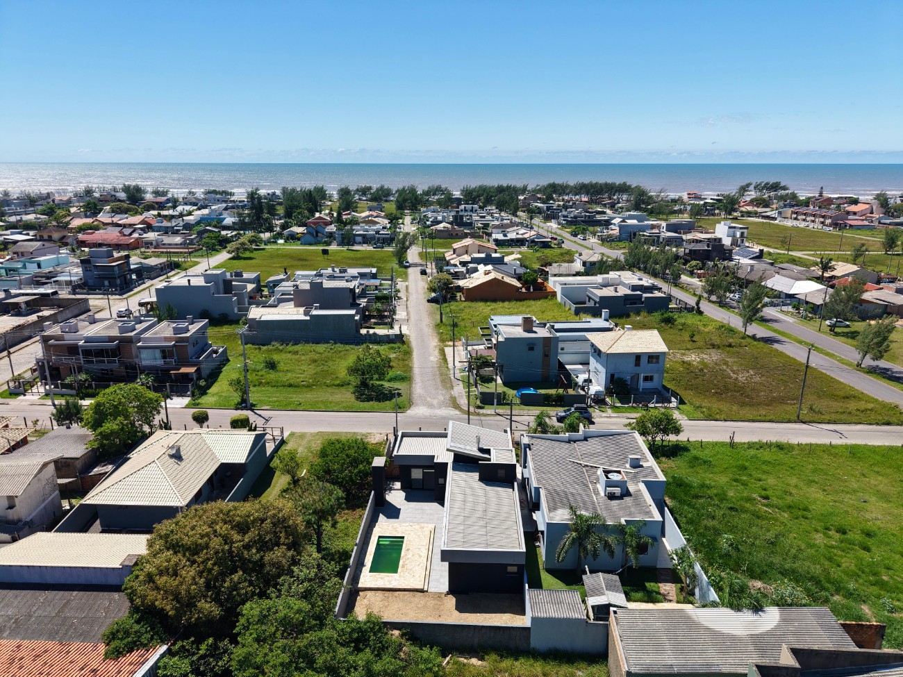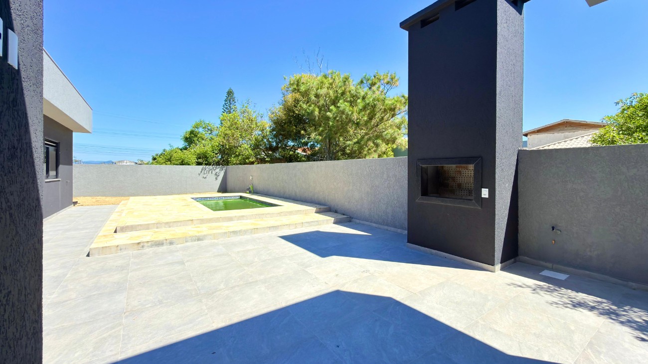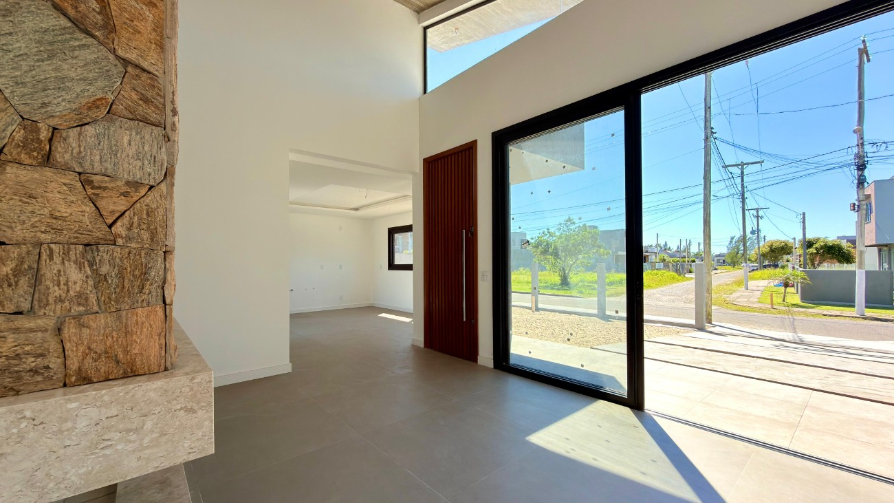 Casa térrea moderna a apenas duas quadras do mar, ideal para quem busca conforto, funcionalidade e um ambiente perfeito para aproveitar o litoral. Com 120m² de área privativa, o imóvel conta com 3 dormitórios, além de um amplo living integrado em três ambientes, proporcionando espaço e integração entre sala de estar, jantar e cozinha. O destaque da área social é a lareira revestida em pedra, que traz charme e aconchego ao ambiente. A casa possui excelente iluminação natural, esquadrias amplas e um projeto contemporâneo que valoriza os espaços internos. Na parte externa, um pátio com piscina oferece o cenário ideal para momentos de lazer e confraternização com família e amigos. Uma ótima oportunidade para quem deseja morar ou veranear perto do mar, em uma casa nova, moderna e pronta para receber seu estilo de vida.